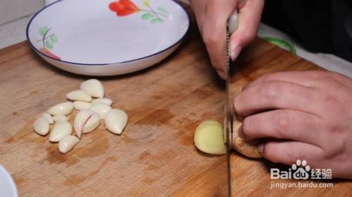 第四:下面我们再准备一些配料,先将姜切成片,蒜切成片,青椒切成段,盛入盘中备用