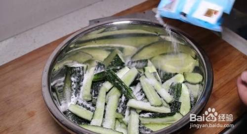 第二:在盛有黄瓜的盆中加入半袋左右的盐,翻拌均匀,腌制5小时左右,腌好之后倒出杀出的水分,