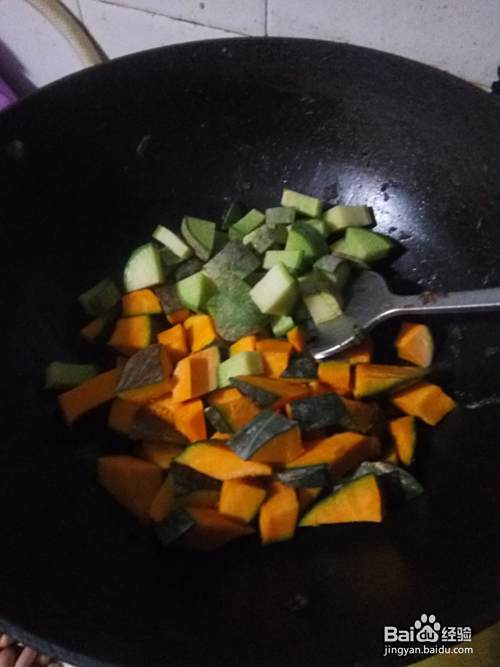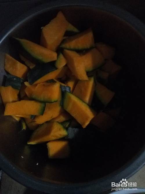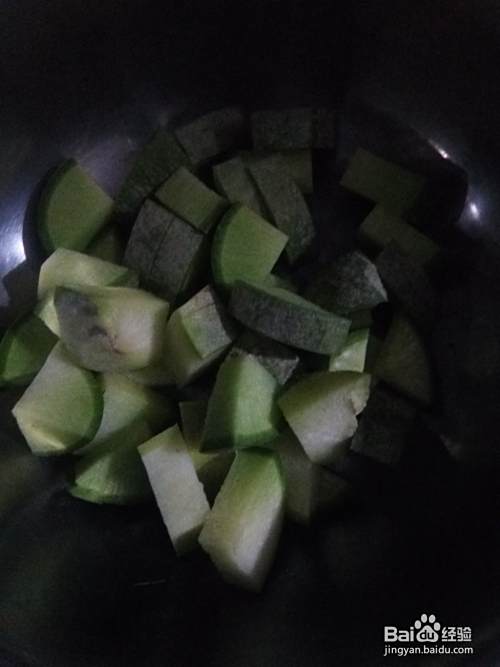 准备南瓜。将南瓜切小块。