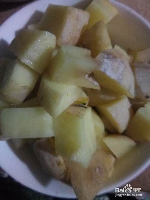 准备土豆。将土豆切小块。