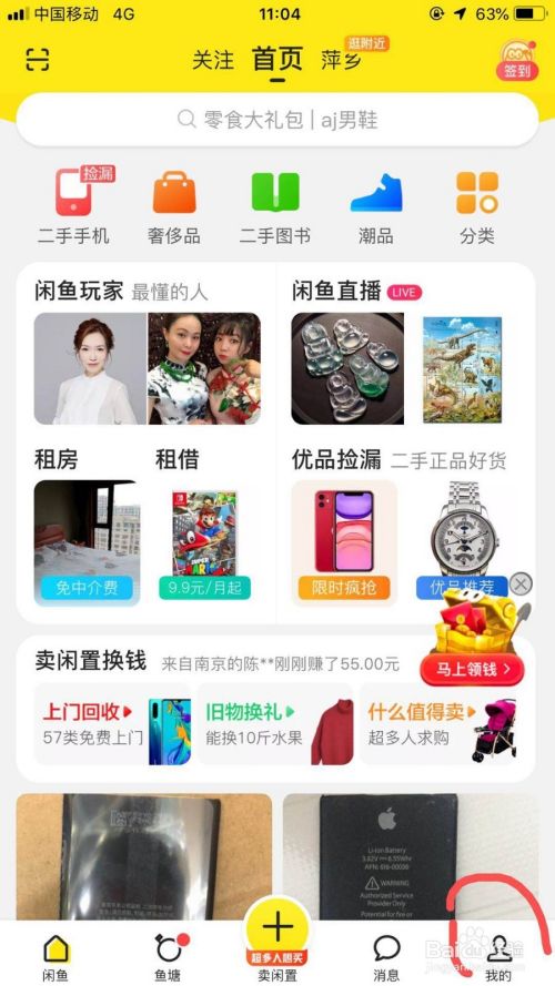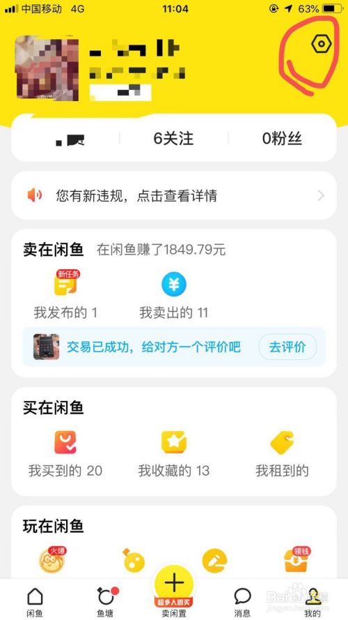 打开闲鱼,进入主页