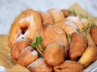 蛋清和白糖混合,打发,低筋面粉、泡打粉、蛋黄和牛奶混合,搅拌均匀,倒入蛋清糊,搅拌均匀,放入水果,裹上面糊,放入热油锅中,炸至金黄色。