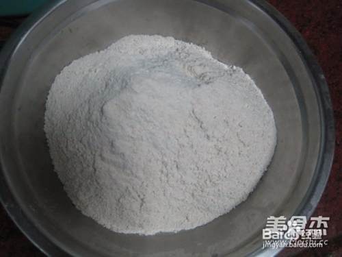 打开一袋荞麦窝头预拌粉倒入盆中。
