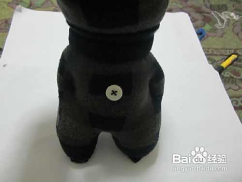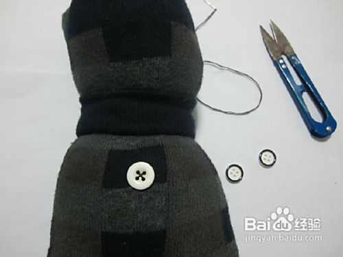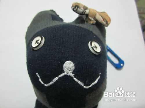 接下来在脸部用纽扣当眼睛缝好。
