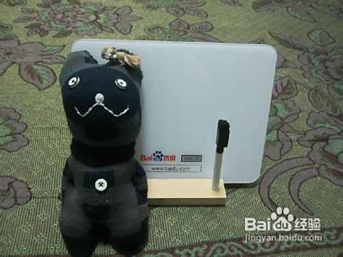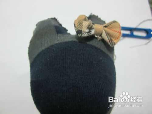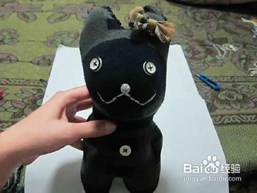 在耳朵上缝一个蝴蝶结,装饰下。