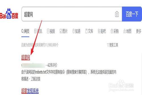 1 在百度搜索“超星网”,并点击超星网官方链接。