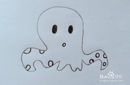 第二步,用铅笔画出章鱼的眼睛和嘴巴,如图所示。