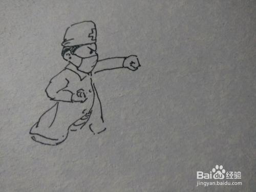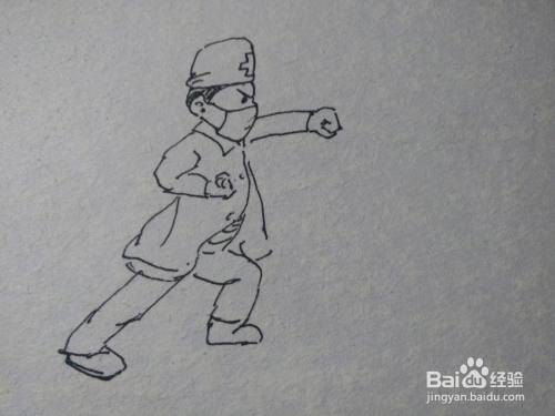 第三步画出医生的两条胳膊,注意胳膊的动态。