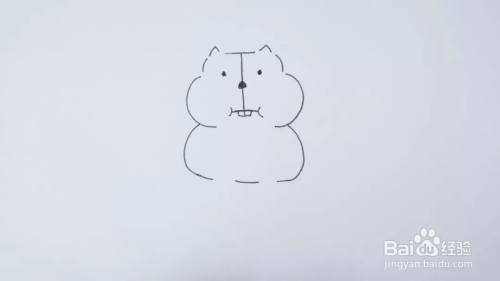 再画上胖乎乎的脸颊,仓鼠的脸颊里可以放很多食物,平时我们看到的仓鼠总是在咀嚼食物,脸上的肉也一颤一颤的。