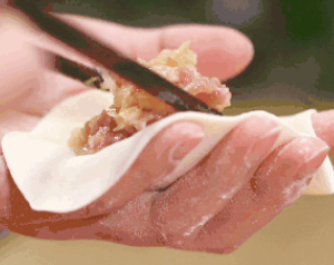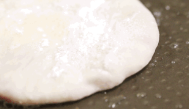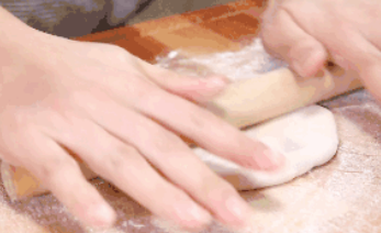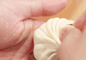 像包包子一样收口捏紧,收口朝下,手掌轻轻按扁后用擀面杖擀平