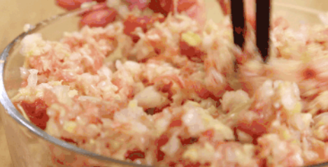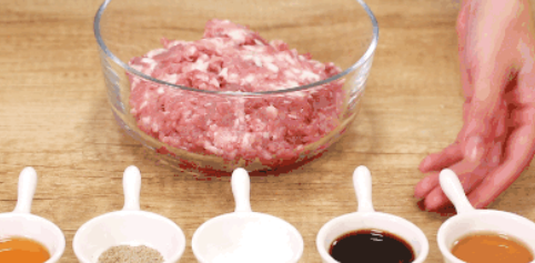 静置出水后用手捞起并挤出水分,将挤出水分的白菜碎放入另一个空碗中,肉末中倒入料酒、生抽、盐、胡椒粉、香油搅拌均匀