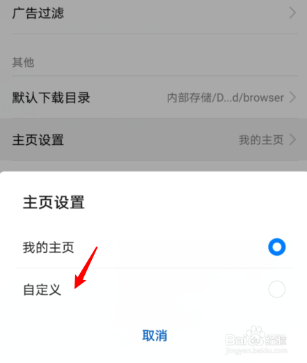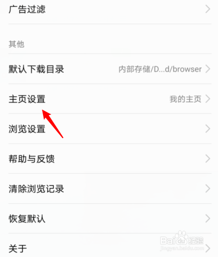 选择主页设置的选项。