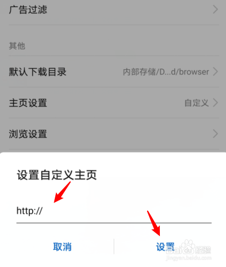 输入需要设置的主页网址,点击下方的设置。