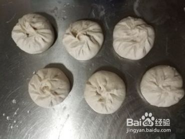手上和案板上沾水,小剂子擀开包馅料,收紧收口,依次做好