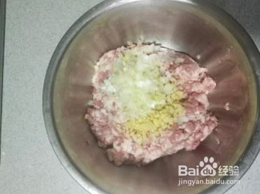 打入一个鸡蛋,顺一个方向搅拌,让肉馅报团