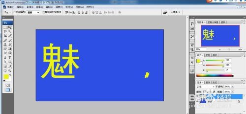 2.新建一个文本图层,更改字体颜色为黄色,写一个”魅”字