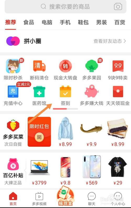 在拼多多首页中找到签到点进去。