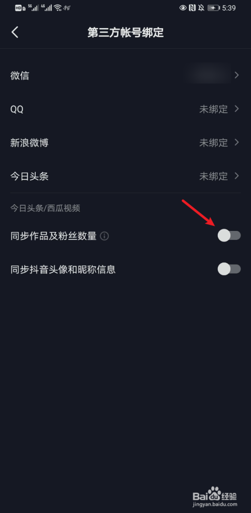 第6步,在“第三方帐号绑定”界面中将“同步作品及粉丝数量”选项设置为关闭状态即可罩泪。没码