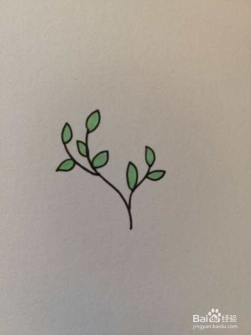 在长斜线最上面加一片叶子,修饰完整