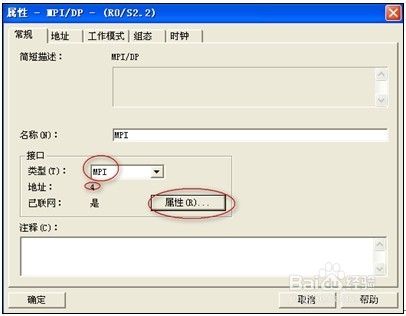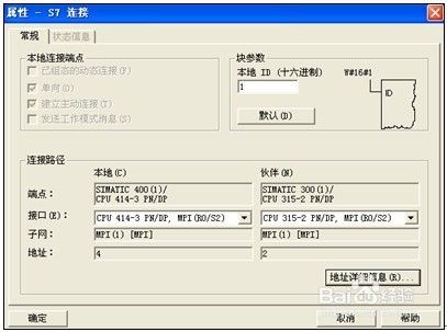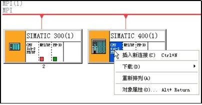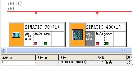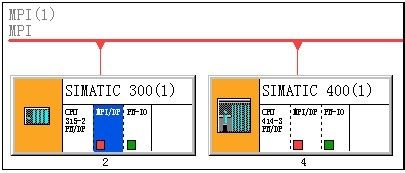 设置SIMATIC400(1)MPI地址为4,并将通信双方连接到此MPI网络。
