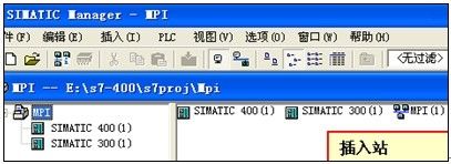 新建项目CQUPT-MPI,在STEP7中创建两个站,设置通信双方的MPI地址,设置SIMATIC300(1)MPI地址为2。