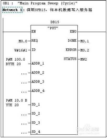 在s7-400站(客户端)调用通信系统功能块SFB15(PUT)向s7-300站(服务器端)发送数据,调用通信系统功能块SFB14读取s7-300站的数据。程序如下: