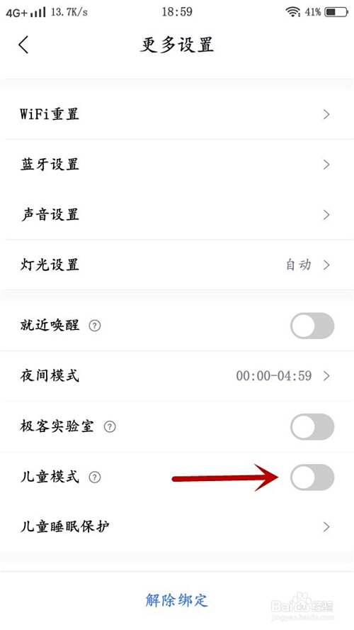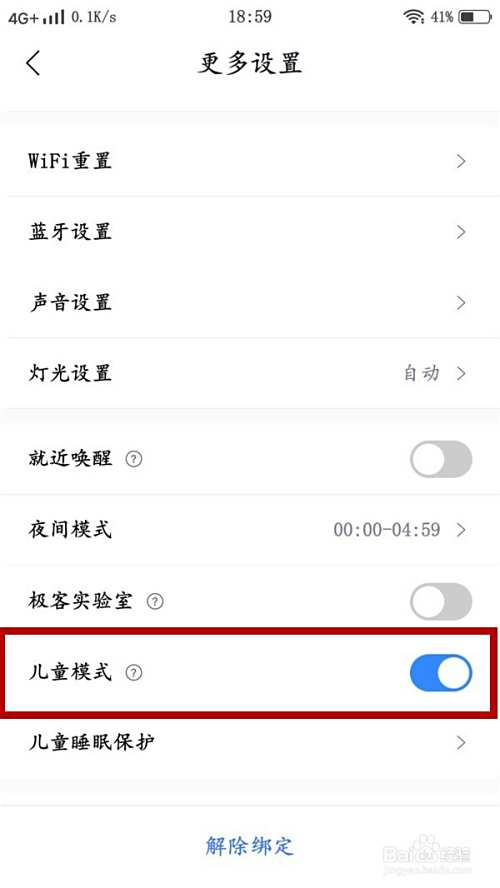 4、然后,将【儿童模式】后的按钮打开