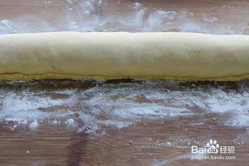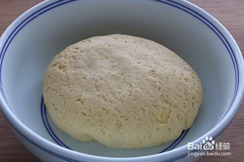 2、温水大约80克左右,加入4克酵母融化,然后再把玉米面里加入200克普通面粉,用酵母水和面,揉成软硬适中的面团即可;