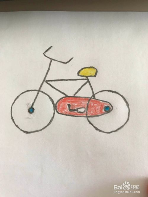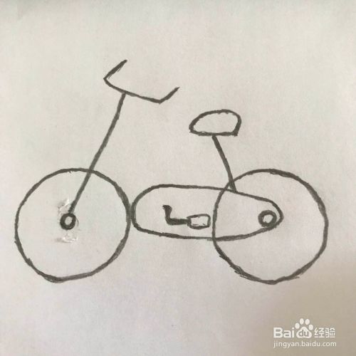 在自行车的中间画一个三角符号,把车把、后座和椭圆连接起来,见下图