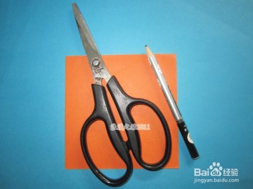 首先准备好折纸材料,换一张正方形的纸,一把剪刀,一支笔,如图所示。