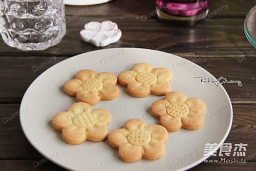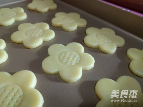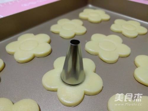 10用花朵形饼干模在面团上压出相应形状