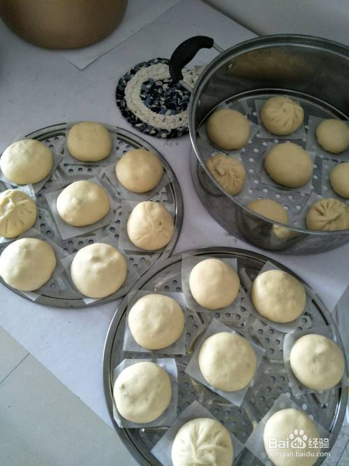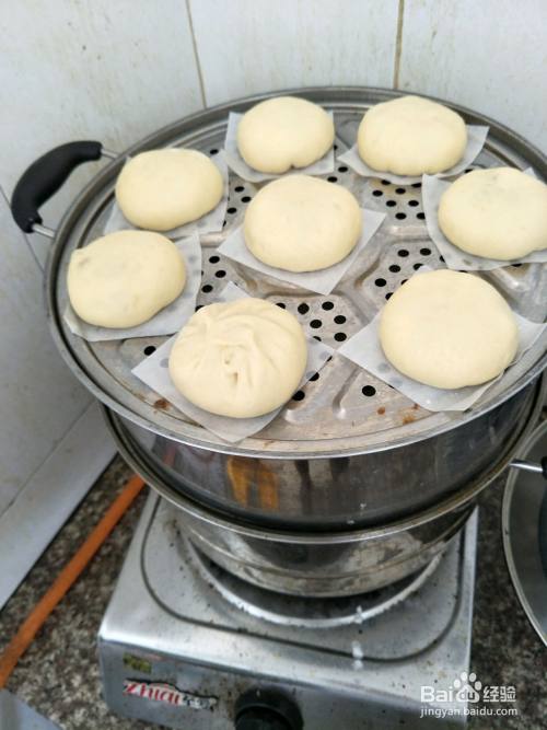 全部包好,再次发酵10分钟。放进锅大火蒸15分钟。(也可以放进蒸锅里开一点火感觉里面的水有点温了,再关掉火。让它在里面发酵10分钟左右再大火蒸15分钟!)