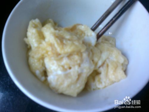 将适量的食用油倒入锅中加热→待油温升至热油后,将鸡蛋液倒入锅中→用菜铲均匀翻炒,使蛋液快速凝固→关火→将尼姑后的鸡蛋盛出备用。