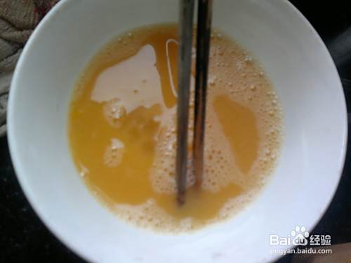 选用1颗鸡蛋,将蛋清、蛋黄打入碗中→将蛋清、蛋黄均匀搅拌成蛋液备用即可。