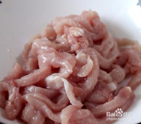 2将猪肉去掉肥肉,然后将瘦肉切成丝,接着将猪肉丝放在一个碗中,加上料酒少许,加上胡椒粉少许,生抽一小勺,用猪肉丝用筷子搅拌,这样猪肉丝更容易入味一些。