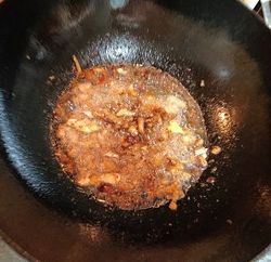 4起锅加上冷油,烧到温热,加上一些腌制好的猪肉丝,不停的翻炒至猪肉均匀受热,猪肉丝变为白色,证明猪肉丝炒熟,猪肉丝装盘。