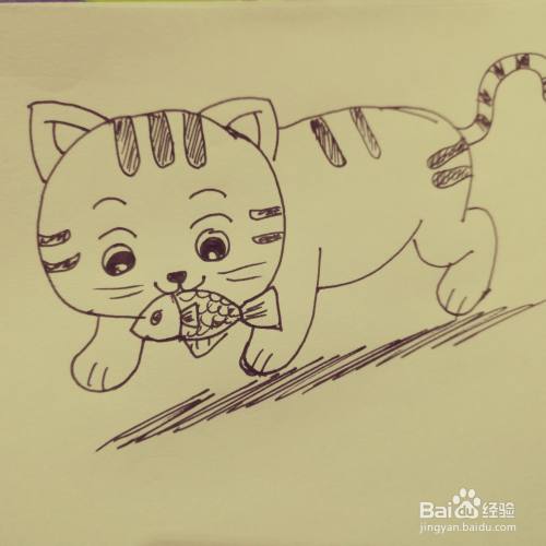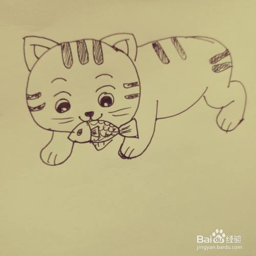 我们如何来画一只卡通吃鱼的小猫咪简笔画呢,今天小编来为大家画一下这只卡通小猫咪,大家一起来看看是如何画的吧。