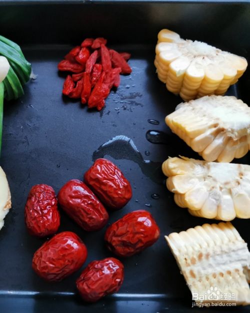 新鲜的人参(不,你可以放胡萝卜)、葱、姜、红枣、枸杞、玉米洗净备用(把玉米切成你喜欢的大小,我不介意你把整个放进去?)