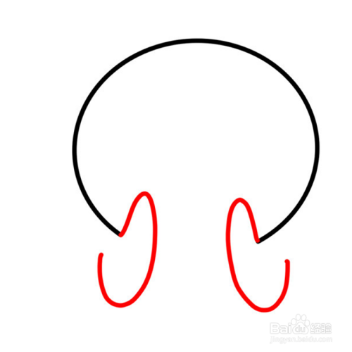首先,我们要画出一个圆,注意圆的下端五分之一的位置不要连接起来。然后在这两端画上小黄鸭的手,就像两颗豌豆一样。