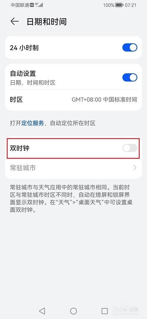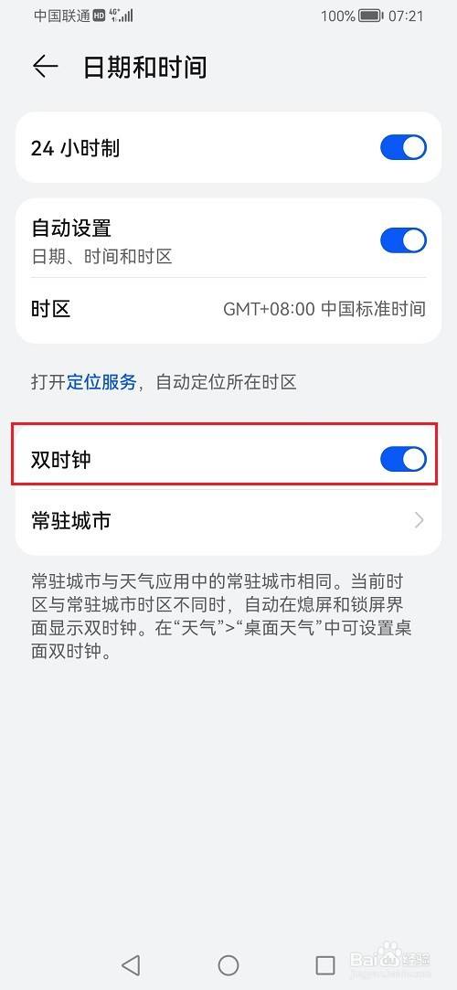 第五步点击开启之后,就成功开启鸿蒙系统双时钟了,根据需要设置
