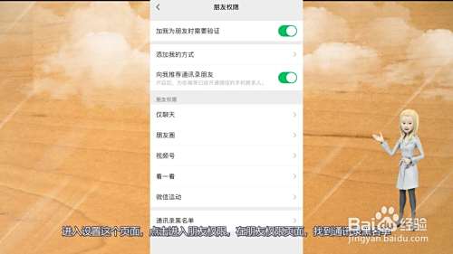 进入设置这个页面,点击进入朋友权限,在朋友权限页面,找到通讯录黑名单。