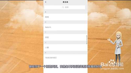翻转至下一个新的页面,在黑名单页面选择需要恢复的好友。