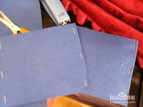第二步:准备好不织布,小编采用的是蓝色的。将蓝色的大块不织布才建成相同大小的不织布,如图所示,小编一共裁剪了四张。
