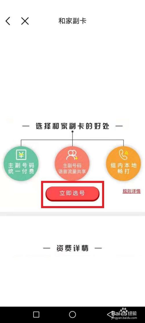 阅读副卡的资费详情,使用特点,付费方式等信息,点击立即选号。