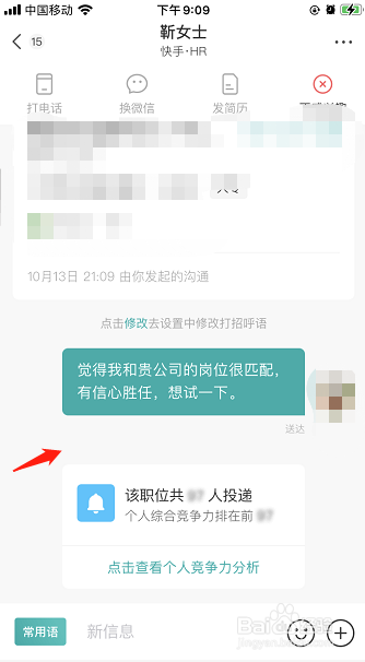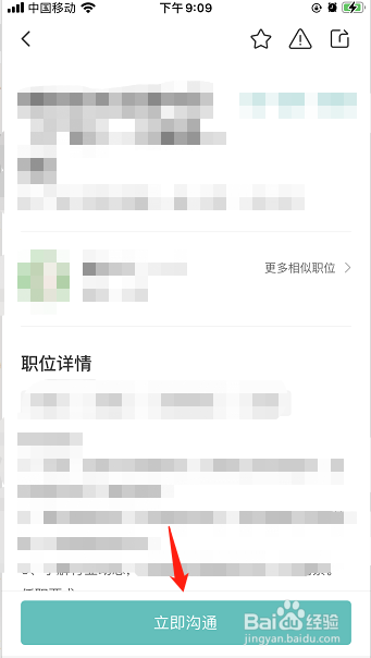 在工作详情界面,点击立即沟通按钮