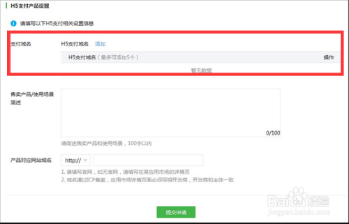点击申请开通页面会来到微信支付H5支付的申请开通界面。