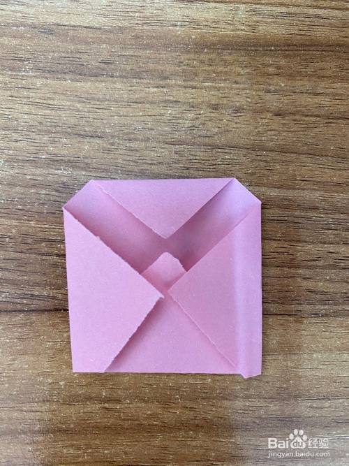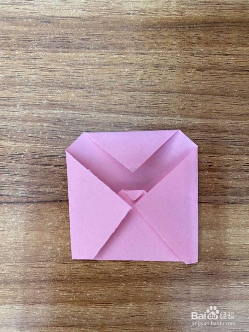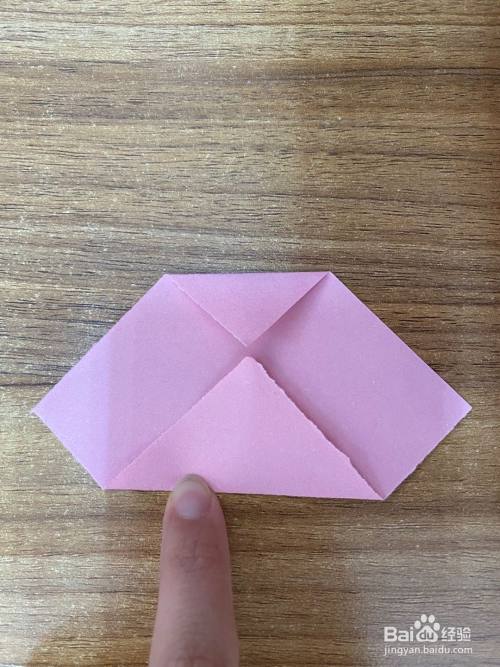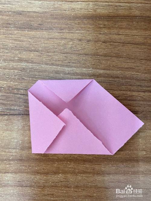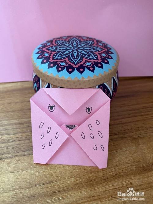 中间虚线处向下折叠,做出猫头鹰的嘴巴,如图所示。