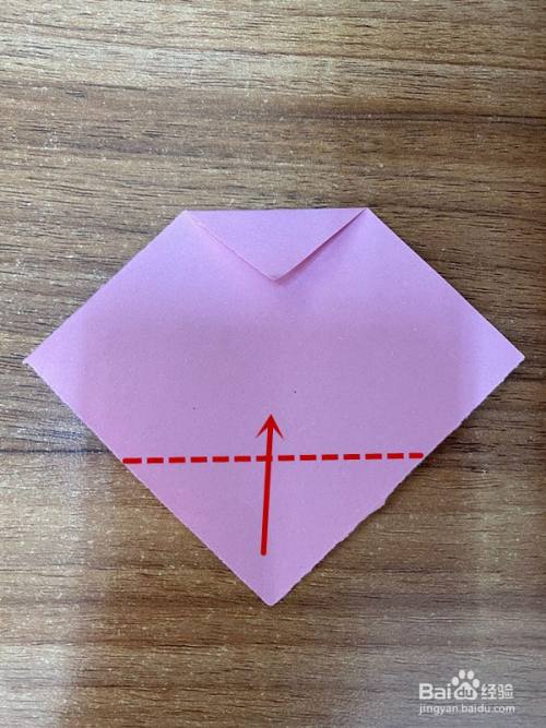 沿虚线处向上折叠,与上面的角对齐,如图所示。