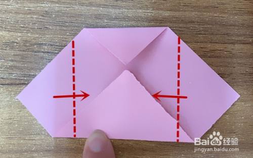两边沿虚线处向中间对折,如图所示。