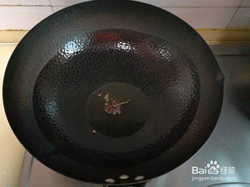 炒锅中放入适量调和油,油热后放入花椒和八角炸出香味